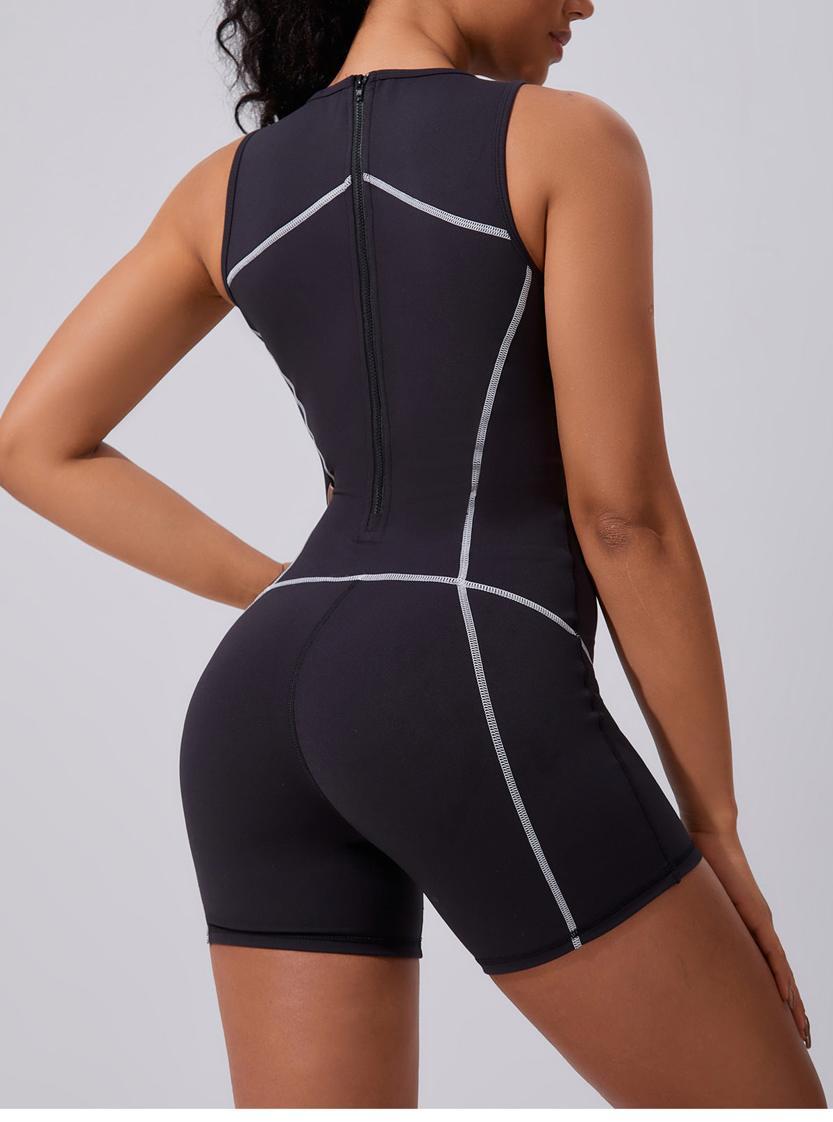 The design is equally intentional. The sleeveless cut keeps you unrestricted, while the back zipper (equipped with a non-slip design) ensures easy on-and-off—no more struggling with tight, pull-on activewear. The star of the design, however, is the contrasting color stitching: sleek, light-toned lines trace the body’s natural curves, creating a contouring effect that cinches the waist, defines the hips, and lifts the glutes (dubbed the “peach lift” silhouette). This color-blocking detail breaks up the monotony of solid activewear, adding a modern, eye-catching touch that transitions seamlessly from the gym to coffee runs. Every stitch is placed to enhance both function and form: the seams are structured to support movement while accentuating your shape, making the jumpsuit as flattering as it is functional.