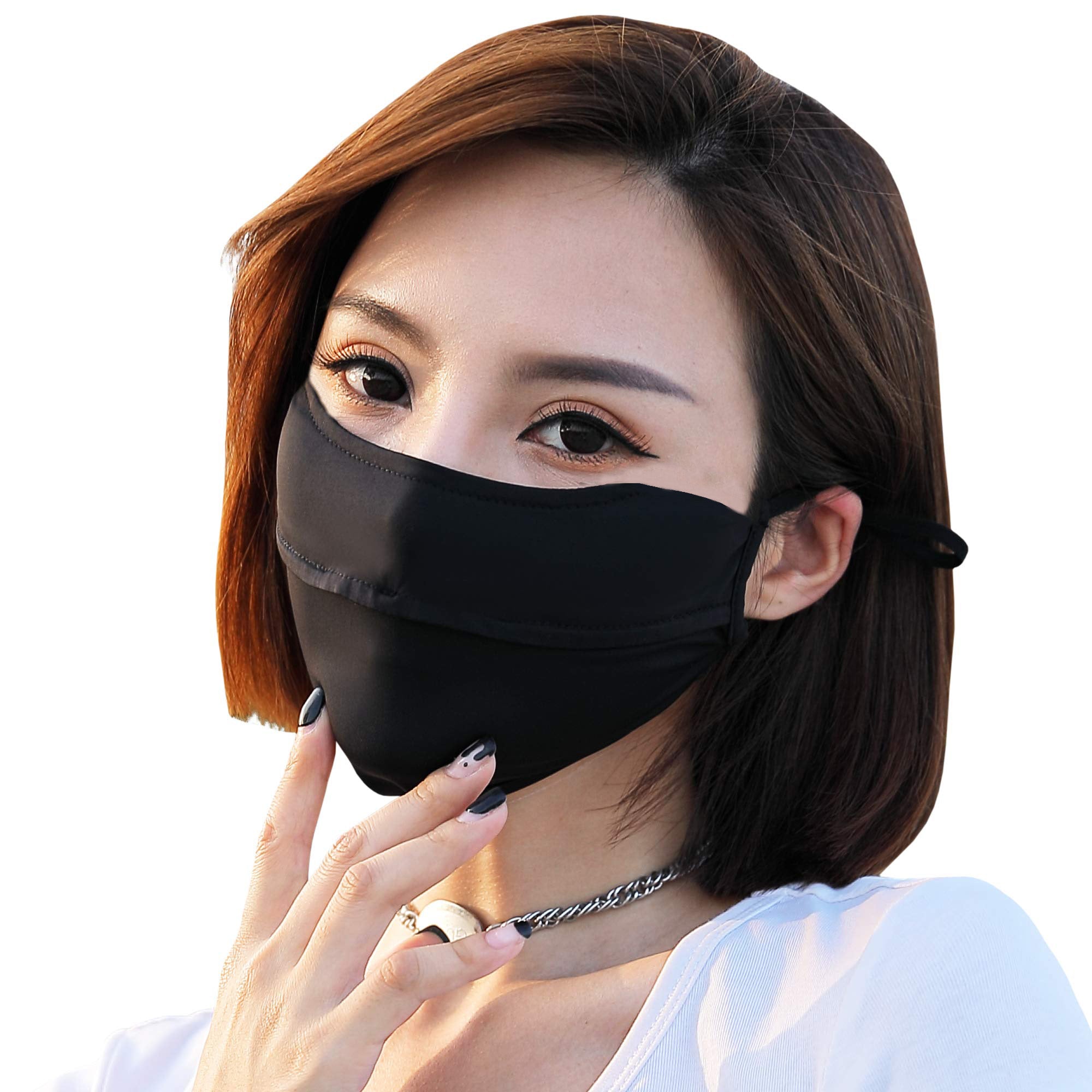 Many sunscreen masks are either too tight or don't stick to your face, leaving gaps. This one is so girly! Made from a stretchy fabric of 92% nylon and 8% spandex, it's four-dimensionally stretched without being tight, precisely fitting the curve of your eyes. It also features 3D support around the corners of your eyes, keeping them comfortable and even under sunglasses. The enlarged, widened design covers your face from cheekbones to chin, even protecting your jawline, which is prone to tanning. It creates a subtle V-shaped silhouette, minimizing your facial shape!