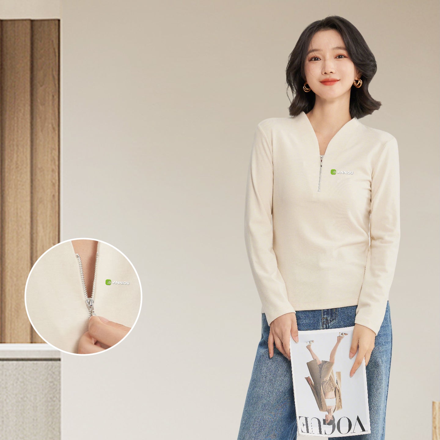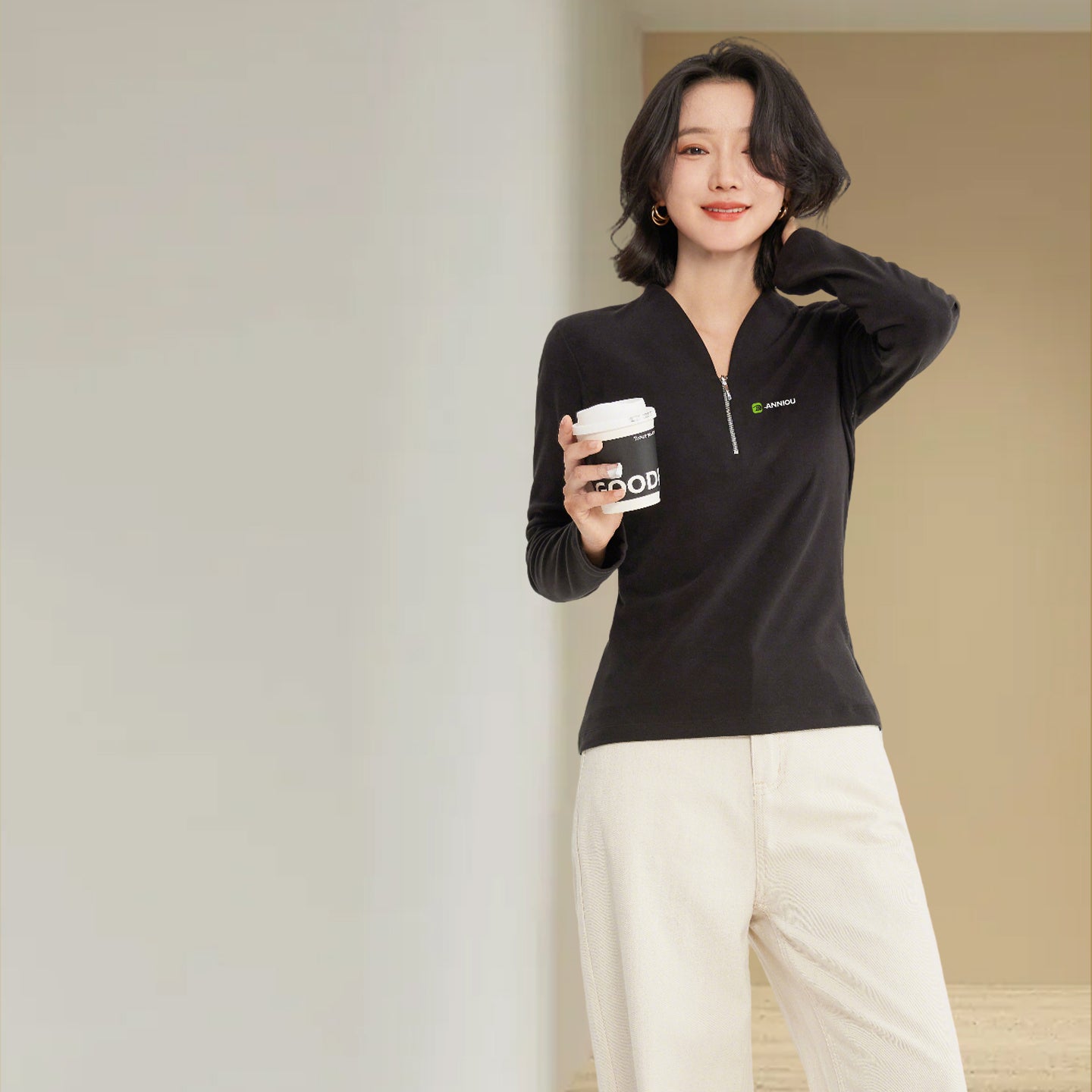 • Design Highlights: A deep V-neck flatters the neckline and collarbone; a half-zip design allows for adjustable opening (windproof/skin-revealing); the slim fit suits petite to slightly plump figures, fitting snugly without being constricting.