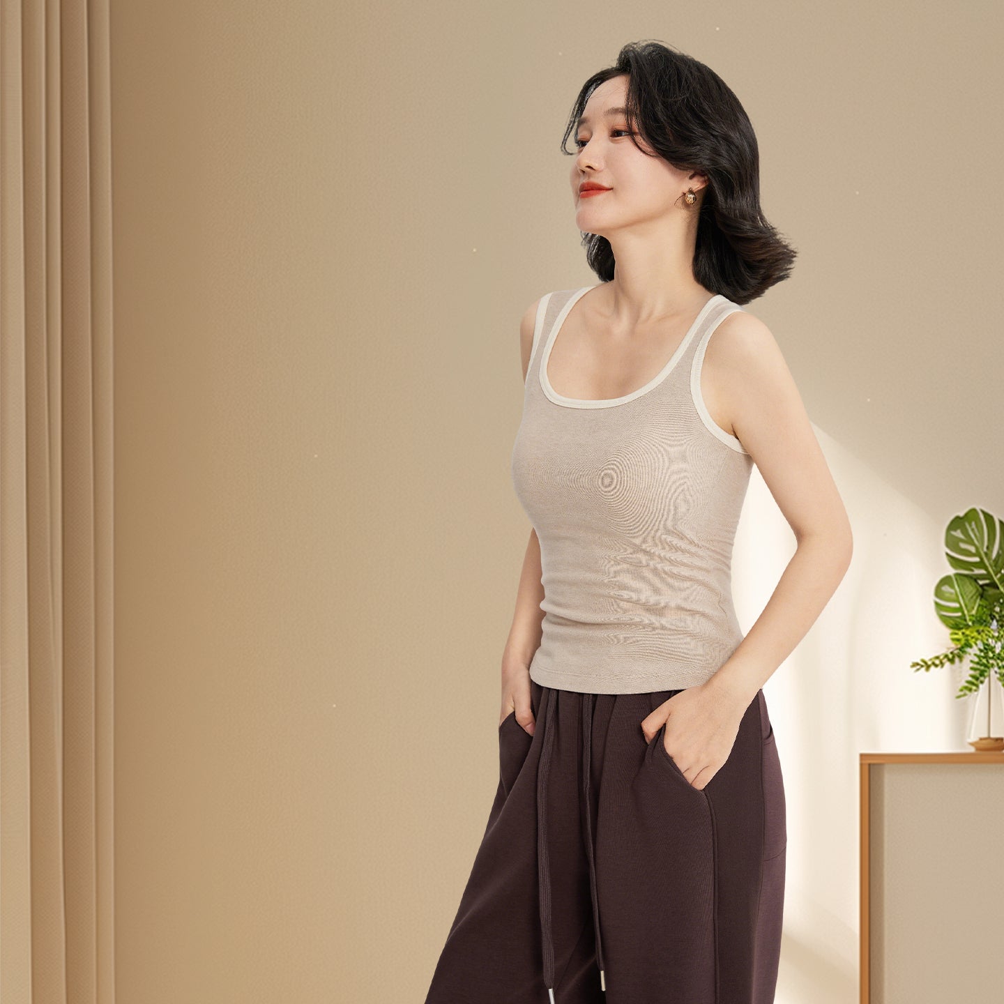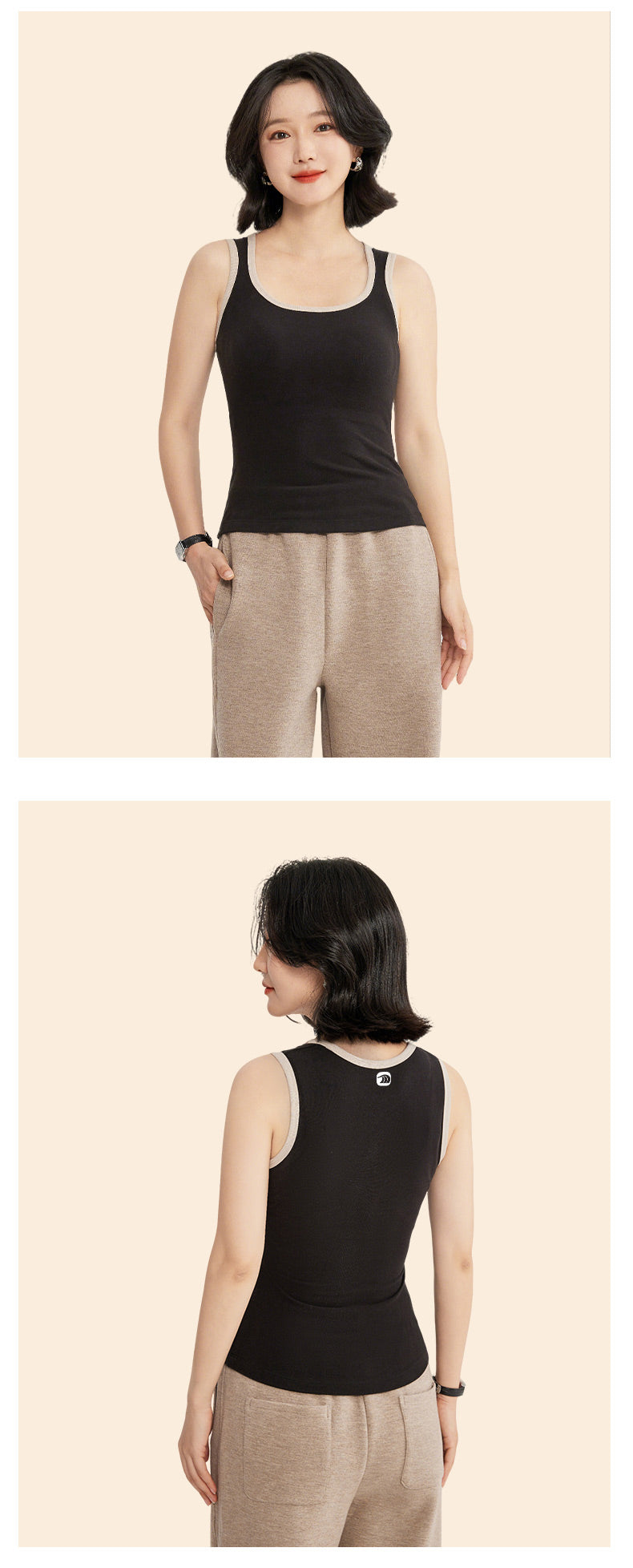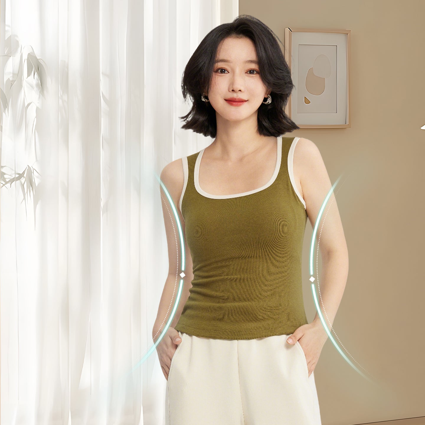No need to rush in the morning, one piece solves both your base layer and bra needs; worried about looking bulky layering in autumn and winter? This Women's Color-blocked Square Neck Vest with built-in latex cups hides the "little secrets" of modern women's dressing. From fabric to design, it hits the mark perfectly, suitable for everyday layering, wearing alone, or as an outer layer!