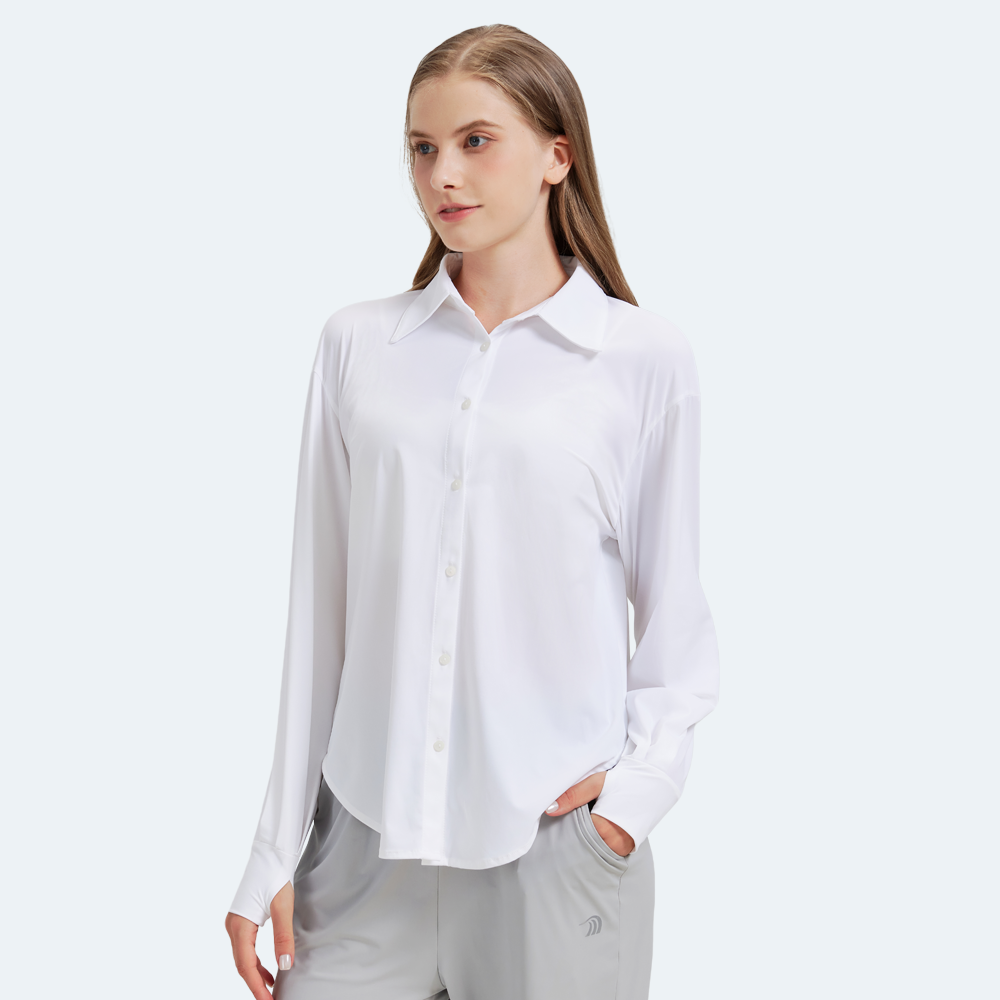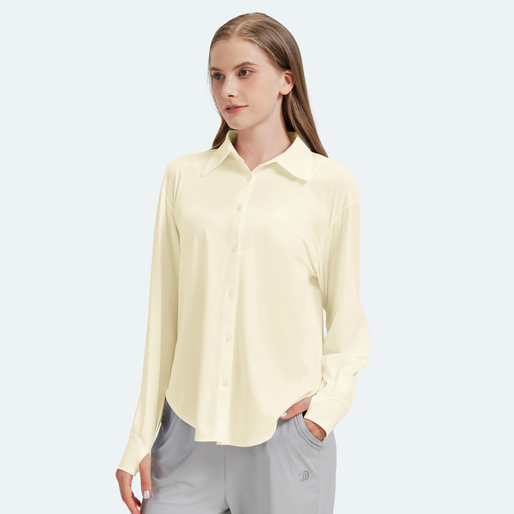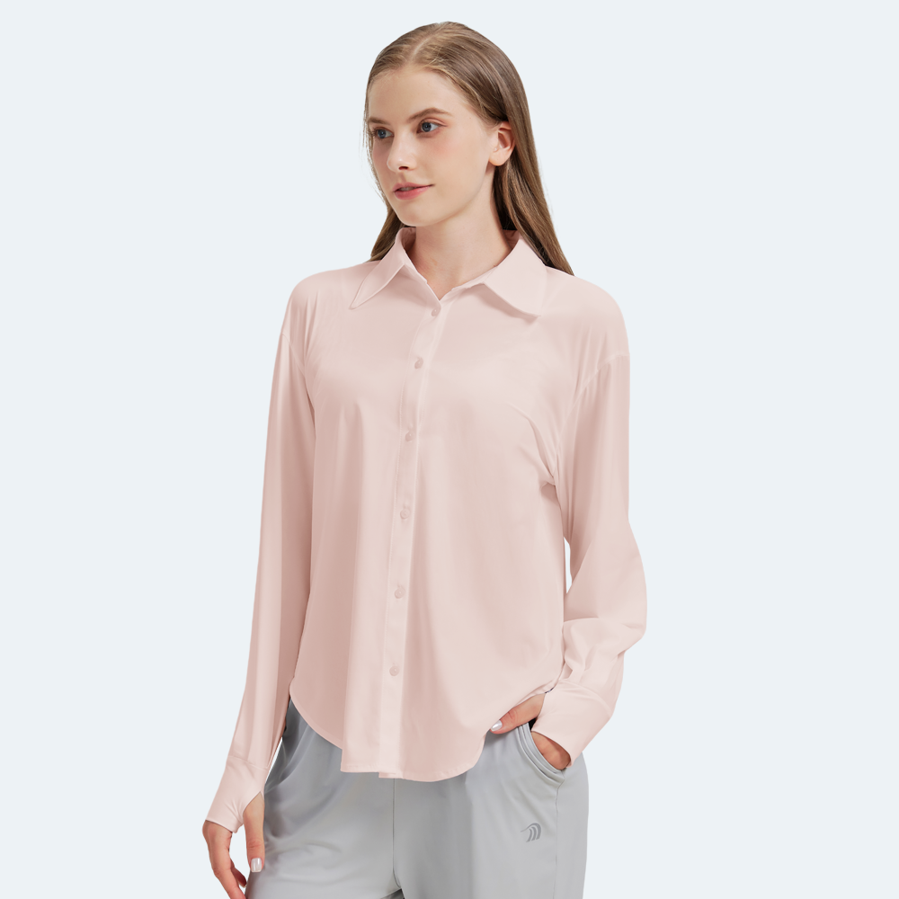 Summer sunshine, though pleasant, harbors a hidden threat that causes skin tanning and aging – ultraviolet (UV) rays. Whether it's the refreshing breeze of a morning run, the exhilaration of a bike ride, the comfort of a vacation, or your daily commute, you need a garment that combines robust sun protection with comfort and style. This Women's Slim Fit Slit UV Protection Shirt arrives with newly upgraded cooling technology, maximizing sun protection while maintaining elegance in everyday wear, making it an indispensable "sun protection champion" in your summer wardrobe.